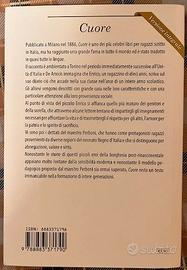 Pubblicato a Milano nel 1886, "Cuore" è uno dei più celebri libri per ragazzi scritto in Italia, ma ha raggiunto una grande fama in tutto il mondo ed è stato tradotto in quasi tutte le lingue. Il racconto è ambientato a Torino nel periodo immediatamente successivo all'Unità d'Italia e De Amicis immagina che Enrico, un ragazzino di dieci anni, scriva sul suo diario ciò che accade nella sua classe nell'arco di un intero anno scolastico. Gli allievi vengono descritti con grande cura nelle loro caratteristiche e con una particolare attenzione alla loro provenienza sociale. Al punto di vista del piccolo Enrico si affianca quello più maturo dei genitori e della sorella, che attraverso alcune lettere tentano di impartirgli gli insegnamenti necessari per affrontare la vita e di trasmettergli il rispetto per gli altri, l'amore per la patria e lo spirito di sacrificio. Vi sono poi i dettati del maestro Perboni, che hanno come protagonisti ragazzi provenienti da diverse regioni del neonato Regno d'Italia e che si distinguono per abnegazione, valore e virtù. Nonostante le storie di questi piccoli eroi della borghesia post-rinascimentale appaiano molto lontane dalla sensibilità moderna e nonostante il modello pedagogico proposto dal maestro Perboni sia ormai superato, "Cuore" resta un testo immancabile nella formazione di intere generazioni. Età di lettura: da 8 anni.