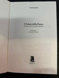 Dan Simmons – L’Estate della Paura (Summer of Night) Edizione Gargoyle Books – 2006 – Horror cult Vendo “L’Estate della Paura” di Dan Simmons, uno dei romanzi horror più apprezzati degli anni ’90, considerato un vero cult della narrativa dark moderna. 📖 Dettagli del libro Autore: Dan Simmons Titolo originale: Summer of Night Titolo italiano: L’Estate della Paura Editore: Gargoyle Books Prima edizione Gargoyle: novembre 2006 Traduzione: Annarita Guarnieri Postfazione: Riccardo D’Anna ISBN: 9788888954111 Copertina rigida con sovraccoperta Lingua: italiano 📚 Il romanzo Un horror potente e atmosferico che richiama le atmosfere di Stephen King e Dean Koontz, ambientato in una cittadina americana dove un gruppo di ragazzi scopre un oscuro segreto legato alla loro scuola e a presenze inquietanti. Un mix perfetto di mistero, suspense e nostalgia dell’infanzia, considerato uno dei migliori romanzi horror moderni. ⭐ Citazioni celebri Stephen King lo definì: “Uno dei migliori romanzi horror degli ultimi cinque anni.” 📦 Condizioni Libro in ottime condizioni generali, pagine pulite e integre. Normali segni del tempo sulla sovraccoperta (visibili in foto). 📌 Edizione Gargoyle molto ricercata, difficile da trovare in queste condizioni.