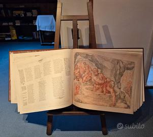 EDIZIONE INTEGRALE IN FAC-SIMILE NEL FORMATO ORIGINALE DEL VOLUME MANOSCRITTO DANTE HISTORIATO DA FEDERIGO ZUCCARO. POSSEDUTO DAL GABINETTO DEI DISEGNI E DELLE STAMPE DEGLI UFFIZI DI FIRENZE. FOTOGRAFO: STUDIO BOZZETTO, CARTIGLIANO, VICENZA STAMPATORE: BERTONCELLO ARTIGRAFICHE, CITTADELLA, PADOVA CON IMPIEGO DI UNA MACCHINA HEIDELBERG SPEEDMASTER STAMPATO CON LASTRE «CAPRICORN GOLD» DELLA KODAK POLYCHROME SU CARTA SPECIALE DELLE CARTIERE MAGNANI DI PESCIA LEGATORE: PROMO, CAMPOSAMPIERO, PADOVA QUESTA EDIZIONE FAC-SIMILE, A TIRATURA RIGOROSAMENTE LIMITATA E REALIZZATA COME SERIE SPECIALE DELLA EDIZIONE NAZIONALE DEI COMMENTI DANTESCHI, SOTTO L'ALTO PATRONATO DEL PRESIDENTE DELLA REPUBBLICA ITALIANA CON IL PATROCINIO DELL'UNESCO, IN COLLABORAZIONE CON ISTITUTO BANCO DI NAPOLI FONDAZIONE E FONDAZIONE CASSA DI RISPARMIO DI PESARO PROVINCIA DI PESARO. COMITATO SCIENTIFICO: ENRICO MALATO, PRESIDENTE GIANCARLO ALESSIO BRUNO BASILE, LUCIA BATTAGLIA RICCI, SAVERIO BELLOMO, CORRADO CALENDA, LEONELLA COGLIEVINA, GIORGIO FULCO, EUGENIO RAGNI, GIANVITO RESTA, GIANCARLO SAVINO, ALDA SPOTTI. SALERNO EDITRICE • ROMA EDIZIONE DI 699 ESEMPLARI NUMERATI DA 1 A 699 PIO 55 DISTINTI CON NUMERAZIONE ROMANA, COMMENTARIO A CURA DI ANDREA MAZZUCCHI, QUESTO ESEMPLARE È DISTINTO DAL NUMERO 176 TUTTI I DIRITTI RISERVATI STAMPATO IN ITALIA OTTOBRE 2004 ISBN 88-8402-452-8 Formato volume: cm 52x65 Rilegato in pelle con incisioni in oro e a secco sui piatti e dorso.