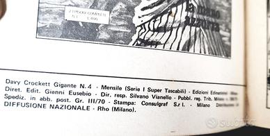 Davy Crockett è stata una serie a fumetti francese, ispirata al romanzo "Davy Crockett". In Italia, con uscite mensili, è stata editata dalle Edizioni Edinational (vedi foto) dal 1975. Questo è il n. 4 e contiene l'episodio "Duello mortale" (vedi foto). Pagg 96. Copertina brossura. In copertina una illustrazione del pittore e illustratore italiano Pino D'Angelico, in arte Pino Daeni (1939-2010). È stato uno degli illustratori più pagati del suo tempo, creando oltre 3.000 copertine di libri, locandine per film e illustrazioni per riviste. La copertina, fronte e retro, porta il segno del tempo; le pagine interne sono intonse. #fumettowestern #fumettovintage #pinodaeni #pinodangelico