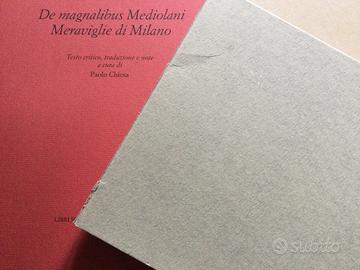 Meraviglie di Milano, testo critico, traduzioni e note a cura di Paolo Chiesa. Edizione Libri Scheiwiller, 1997, collana Fondazione Stelline. In perfetto stato, con cofanettoin cartoncino grigio, con leggero strappo sul bordo posteriore, come si vede dalla foto.
