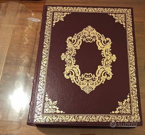 Come da lettera contenuta nell'opera riporto testualmente la descrizione fatta dall'Editoriale del Drago: Decameron di Giovanni Boccaccio Tre volumi per complessive pagine 1200 Carta "Rusticus" velata avorio Legatura in pelle di Madras, impressioni in oro sulle plance e sul dorso, dorso tondo e capitelli, doratura dei tre tagli risguardi in tessuto setato moiré, cofanetto singolo volume. Testo a cura di Vittore Branca, per concessione della Accademia della Crusca. Commento di Michele Scherillo 212 tavole, riproduzioni delle incisioni originali su disegni di Boucher, Eisen, Cochin, Gravelot dell'edifxzione di Parigi del 1757 Numerose riproduzioni di dipinti, disegni, incisioni di Maestri della pittura, di soggetto galante. In appendice il saggio di Ugo Foscolo sul Decameron. Edizione in 20 serie. Milano 10.12.90 Si tratta di un opera a tiratura limitata di 20 esemplari di cui quella in vendita è la numero 10. Mi dispiace che la qualità delle foto non riescono a far emergere tutta la bellezza delle tavole, della copertina in pelle, della stoffa e del dorso in oro. Ogni volume è dotato di una protezione in plastica trasparente. L'opera non è mai stata letta ed è stata sfogliata forse per la prima volta solo per fare le foto. Si presenta così come è uscita dalla stampa, ci sono lievissimi segni sui contenitori esterni fatti dal lungo permanere in libreria, ma le foto dimostrano che sono praticamente insignificanti. L'opera non va confusa con la versione economica che si trova in commercio che non ha nessuno dei numerosi pregi descritti dalla casa editrice. Siamo in presenza di un opera praticamente nuova, del 1983, stampata nel 1990, in perfetto stato di conservazione che fa onore all'editoria italiana di una volta. Larghezza 23 cm. E' un opera introvabile che merita di stare nella libreria di collezionisti che ne sappiano apprezzare il pregio editoriale, l'elevatissimo contenuto letterario e la magnificenza delle oltre 200 opere d'arte riprodotte.