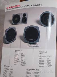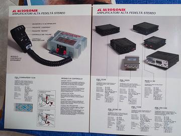Vendo serie depliant Hi-Fi car AUTOSONIK anno 1981. Depliant 8 facciate + depliant 4 facciate + poster + cartolina. Pubblicazioni in ottime condizioni di conservazione. AL15121