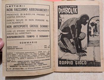 Vendesi Diabolik n.22 anno XIII, titolo "Doppio gioco", in ottime condizioni. Anno 1974. Con pellicola protettiva.