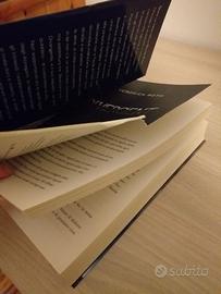 La trilogia di Veronica Roth degli omonimi film e serie tv. Il volume Divergent presenta uno strappo alla pagina del titolo come mostrato in foto.