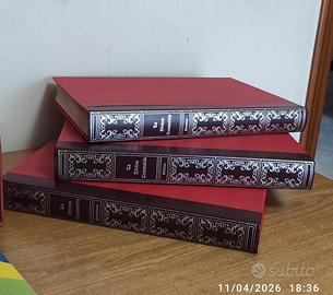 Opera completa in 3 volumi (Inferno, Purgatorio, Paradiso) di Dante Alighieri. Edizione da collezione caratterizzata dalle celebri tavole a tutta pagina di Gustave Doré, con il commento e testo critico storico di Jacopo della Lana. Elegante rilegatura bordeaux con fregi in argento. In un cofanetto originale e fascicolo di presentazione. In ottimo stato, volumi compatti e interni puliti. Vendo a euro 100,00 trattabili.