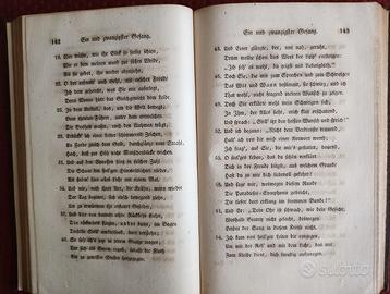 DANTE ALIGHIERI LA DIVINA COMMEDIA IN TEDESCO GOTICO VOLUME n. 3 PARADISO anno1825 pagine 341 VOLUME n. 2 PURGATORIO anno 1826 pagine 345, ben conservato, carta di ottima qualità nessuna pagina mancante . Copertina rigida color marrone ll gotico tedesco con scrittura Fraktur venne usata per la prima volta nel 1513 e 1517 dallo stampatore di corte Schonsperger per realizzare i pregevoli romanzi .Il nome deriva proprio dal carattere spezzato della grafia gotica, e nasce come scrittura di corte elegante. L'uso del carattere Fraktur si diffuse nei territori tedeschi già nel XVI secolo in ogni ambiente, soppiantando la Schwabacher, e venne particolarmente amato nel XVII durante il Barocco, nonostante il resto d'Europa fosse tornato all'Antiqua (che però venne ancora utilizzata per trascrivere i testi latini).