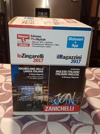 Scatola Zanichelli con All'interno il vocabolario della lingua italiana "IoZingarelli 2017" e il dizionario Inglese-Italiano/Italiano-Inglese "IlRagazzini 2017".