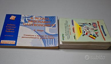 Vendo in blocco 2 volumetti usati, utilizzati in ristorante per la stesura dei menu: - Dizionario alberghiero-gastronomico con oltre 7000 vocaboli utilizzati nel settore - Loco Edizioni dimensioni cm. 10,5 x 15 x 2,5 ISBN 88-85079-15-6; - Il nuovo dizionario gastronomico di E. Neiger - Buffetti editore dimensioni cm. 17 x 12 x 1 ISBN 88-19-01476-9. Non vendo separatamente. Ritiro a mano o spedizione con piego di libri ordinario.