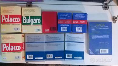 vendo come da foto n°2 dizionari di polacco, n° 1 dizionario di bulgaro (venduto) , n° 6 dizionari di inglese e n° 1 manuale tecnico normativo di economia aziendale singolarmente o tutti in blocco a 20 euro
