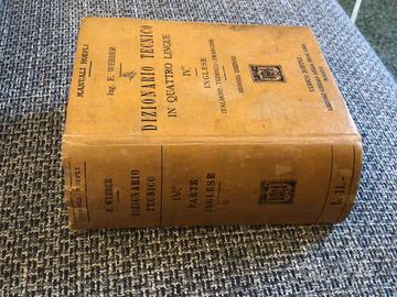 Dizionario tecnico in 4 lingue. IV inglese. Seconda edizione. Dell’ing. E.Webber. Manuali Hoepli. Ed. Libraio della Real Casa Milano. Segni di usura ed ingiallimento carta come da foto.
