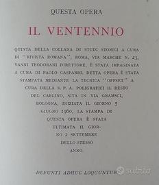 Per nostalgici del genere e dell'epoca fascista, in clima di rievocazione governativa attualmente in corso per il centenario, vendo doppio volume "Il Ventennio" edito nel 1960 per la collana di Studi Storici a cura di "Rivista Romana". Purtroppo il doppio volume si presenta con diversi danni sulle coste e alcune pagine bruciacchiate ai bordi in uno dei libri ma questo non dovrebbe fermare un vero camerata dal procurarsi un rarissimo pezzo da collezione!