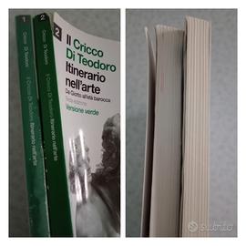 Due libri scolastici di Arte per scuole superiori che s'intitolano " Il Cricco di Teodoro" Itinerario nell'arte (Terza edizione) Versione Verde Entrambi i volumi hanno queste dimensioni: Lunghezza: 29 cm Larghezza: 21 cm Spessore: 1,7 cm Il Volume 1: " Dalla Preistoria all'età gotica" risale al 2010 Il Volume 2: " Da Giotto all' età Barocca" risale al 2011