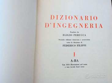 E. Perucca DIZIONARIO DI INGEGNERIA 11 Volumi UTET dal primo volume del 1968 all'ultimo del 1979 Circa 1000 pagine a volume. Buonissime condizioni, leggero invecchiamento da polvere sulla parte superiore, copertine di plastica trasparente integre, qualcuna un po' ondulata. Preferirei non spedire visto il peso immane! Zona Verona.