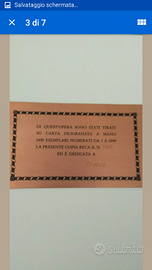 "Descrizione: Edizione numerata n. 757. Presentazione di Giulio Andreotti. Con oltre 200 incisioni e disegni, 2 antiche carte albero genealogico della Casata. Titolo: I Savoia Autore: Arrigo Pecchioli Editore: Editalia Anno di pubblicazione: 1991 Numero di pagine: 277 Formato moderno: Cartonato Descrizione: Edizione numerata n. 1340. Presentazione di Giulio Andreotti. Con oltre 200 incisioni e disegni, 2 antiche carte albero genealogico della Casata. Condizioni del prodotto:: Esemplare in buone condizioni, rilegato in pelle pregiata, con copertina a sbalzo, borchie in metallo sul retro, dorso con nervature e impressioni in oro zecchino. Stampa su carta speciale Fabriano. Il volume è contenuto in cofanetto telato illustrato, che presenta tracce di polvere. Peso: 8 Altezza: 43