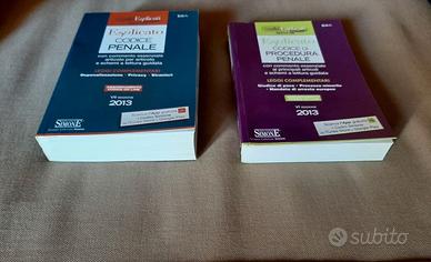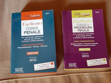 Edizione Giuridiche Simone quattro Codici Esplicati Minor, con commento essenziale articolo per articolo e schemi a lettura guidata: Esplicato Codice Civile e Leggi Complementari pagine 1375. Esplicato Codice di Procedura Civile e Leggi Complementari pagine 1119, Esplicato Codice Penale e Leggi Complementari pagine 1023, Esplicato Codice di Procedura Penale e Leggi Complementari pagine 734, nuovissimi mai usati vendo euro 20. Li vendo anche separati