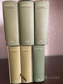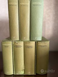 Interni in ottimo stato. Alcune sovracopertine leggermente usurate. Alcuni volumi presentano sottolineature lineari a penna e/o note di rimandi storici/bibliografici a piè di pagina a matita (cancellabili) elegantemente scritti