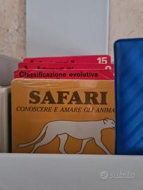 Struttura delle schede: Ogni scheda è dedicata a una specie animale. Sul fronte presenta una fotografia a colori a tutta pagina, mentre sul retro si trovano la carta d'identità (peso, altezza, habitat), il comportamento, l'alimentazione e la distribuzione geografica. Divisori: Le schede sono separate da linguette colorate che dividono gli animali per categorie (Mammiferi, Uccelli, Rettili, Pesci, Insetti, ecc.).