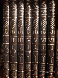 Rara edizione vintage dell'Enciclopedia del Pescatore, pubblicata da Fratelli Fabbri Editori nel 1969. L'opera è un punto di riferimento storico per le tecniche di pesca, l'ittiologia e le attrezzature. • Edizione: 1969 (Prima edizione). • Volumi: Lotto di 7 volumi (dal I al VII). • Rilegatura: Copertina rigida in similpelle nera con eleganti fregi e titoli in argento sul dorso e sul piatto. Riccamente illustrata con foto Tenuta in maniera maniacale,perfetta in tutte le sue parti