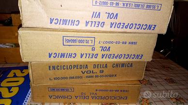 VENDO "Enciclopedia della chimica" Uses (Edizioni Scientifiche, Firenze) in 10 volumi, anni di pubblicazione dal 1972 al 1983. I volumi sono tutti elegantemente rilegati e protetti da pellicola trasparente, sono stati usati pochissimo e sono in ottimo stato di conservazione. Ogni volume ha ancora la propria custodia in cartone (alcuni con la stampa originale dell'editore).