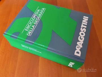 Enciclopedia della Geografia De Agostini.Direzione: Marco Drago, Andrea Boroli. Direzione Editoriale Libri: Paolo Boroli, Vincenzo Ceppellini. Direzione delle Opere di Base: Lucio Lamarque Direzione di produzione: Ettore Simone. Coordinamento editoriale: Luciana Biagini. Testi a cura di Silvio Locatelli e Wanda Bonaccini — con la collaborazione delle Redazioni IGDA. Dati statistici a cura di Achille Soldani. Redazione, aggiornamenti e realizzazione grafica Editris s.n.c., Torino. Disegni di Gabriella Bussi, Franco Gastaldi, Fabrizio Porcelli, Mario Logli, Aldo Ambrosini, Annalisa Durante, Raffaello Galli, Archivio IGDA, Studio Leveni, Lorenzo Orlandi, Aldo Ripamonti, Luciano Taccon. Cartografia a cura dell'Ufficio Cartografico dell'Istituto Geografico De Agostini diretto da Giuseppe Motta. Edizione a cura: INIZIATIVE SPECIALI DE AGOSTINI. Direttore: Roberto Besana C.so della Vittoria, 91 - 23100 NOVARA Edizione speciale per ESSO Italiana S.p.A. Istituto Geografico De Agostini S.p.A., Novara – 1. Stampa: Officine Grafiche De Agostini, Novara 1996 Legatura: Legatoria del Verbano. Caratteristica di questa enciclopedia infatti è la presentazione in ordine alfabetico di una materia vasta come quella della geografia. Tale sistemazione è infatti la miglior chiave di ingresso per addentrarsi in ogni quesito geografico. L'opera che tiene conto degli interessi e delle esigenze che si possono presentare nella vita scolastica e quotidiana, sovrappone ai temi tradizionali della geografia quelli di ordine ambientale ed ecologico. Conoscere il pianeta sul quale viviamo per conservarlo per coloro che ci seguiranno è di sicuro un obiettivo che tutti noi abbiamo in comune. L'opera che Le consegniamo registra tutto il nuovo che in questi anni si è affacciato sul nostro pianeta: i nuovi stati, province italiane. Copertina rigida, numero Pagine:1327. 64 tavole a colori illustrate con tematiche dettagliate.Ottimo stato, come da foto pubblicate.