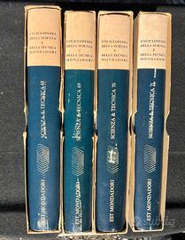 (7 volumi + 4 annuari di circa 2,5kg l’uno..sono circa 25kg totali) L'Enciclopedia della scienza e della tecnica(EST) Iniziativa editoriale della Arnoldo Mondadori Editore (ispirata dalla McGraw-Hill Encyclopedia of Science & Technology). Nei primi anni sessanta rappresentò “un'esperienza fondamentale nel campo dell'alta divulgazione scientifica in Italia” L'enciclopedia si compone di 7/13 volumi , pubblicati in prima edizione nel 1963. In essi gli articoli sono ordinati secondo la sequenza alfabetica. Al corpus dell'enciclopedia si aggiunsero degli annuari, (68-69-70-71) pubblicati annualmente dal 1968 al 1992 col titolo di Scienza & Tecnica 68. Annuario della EST (e successivi). Gli annuari, oltre a una puntuale rassegna internazionale dei progressi scientifici e tecnologici dell'annata precedente, comprendono anche articoli originali di notevole rilievo, scritti da scienziati e da tecnologi di fama internazionale (come il direttore del “Programma Apollo Rocco Petrone” che contribuì con una descrizione degli impianti del “John F.Kennedy Space Center “ predisposti per le missioni lunari. Nei primi tre volumi dell'annuario, editi tra il 1968 e il 1970, vennero pubblicate delle ampie rassegne bibliografiche relative a tutti gli ambiti disciplinari scientifici e tecnologici, insieme a una presentazione critica dello stato della comunicazione scientifica predisposta dall'UNESCO.