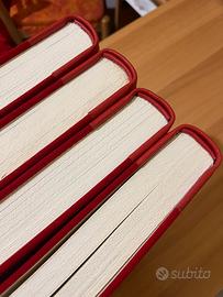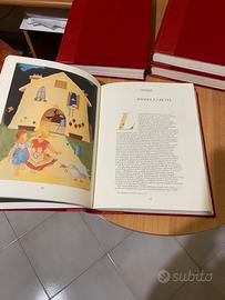 Propongo questa raccolta di oltre 150 fiabe dalle più famose a quelle meno conosciute ma altrettanto entusiasmanti….Raccolte in 4 volumi rilegati con materiali di elevato pregio copertina in pelle nappa rossa con caratteri in oro e velluto rasato, la carta dei testi interni é una Bodonia Fedrigoni di elevata qualità. Il formato dei 4 volumi è leggermente più grande dell’ A4 = 25x33 cm. Garantisco che l’opera è nuova senza alcun difetto e senza sottolineature.