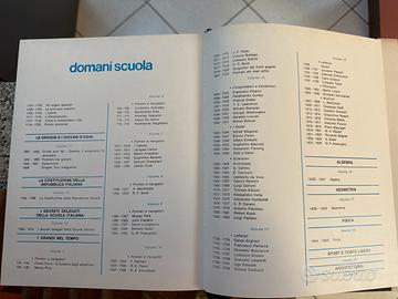 Indice generale come riportato nelle immagini trattando i seguenti argomenti: Storia, Geografia, Grandi Paesaggi della Terra, Ecologia, Popoli sopravvissuti, Chimica, Botanica, Zoologia, Astronautica, Il Corpo Umano, Le Droghe e i Giovani d’oggi, la Costituzione, i Grandi nel Tempo, Algebra, Geometria, Fisica, Sport e Tempo Libero, Architettura.