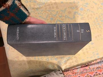 Prestigiosa Enciclopedia Europea Garzanti, opera completa in 12 volumi, rilegati in similpelle grigia con titoli e fregi dorati.