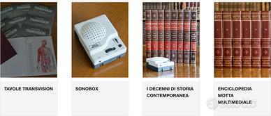 Enciclopedia Motta cartacea completa mai utilizzata, con certificazione di originalità, così composta : AG Atlante geografico AN0 Aggiornamento Nuova enciclopedia Motta 2010 AN5 Aggiornamento nuovo enciclopedia Motta 2005 AN6 Aggiornamento nuovo enciclopedia Motta 2006 AN7 Aggiornamento nuovo enciclopedia Motta 2007 AN8 Aggiornamento nuovo enciclopedia Motta 2008 AN8 Aggiornamento nuovo enciclopedia Motta 2009 AST Atlante storico DVM Dizionario visuale multilingue EP Enciclopedia pratica E18 Enciclopedia Motta 18 volumi LES Lessico TV Tavole Transvision