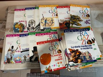 Vendo enciclopedia per ragazzi, copertina rigida, completa di 25 volumi che trattano varie tematiche, come nuova, edizione Fabbri Larousse del 1998, considerato il peso preferirei la consegna a mani. In regalo libro la storia di Milano illustrata e raccontata pagg. 50.