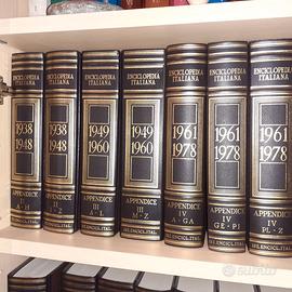 35 volumi rilegati oro con copertina in pelle che costituiscono l'enciclopedia della prima edizione.
