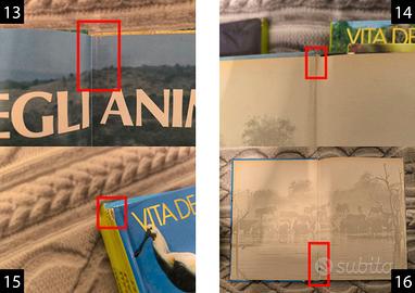 Vendo enciclopedia " VITA DEGLI ANIMALI " Ed. CURCIO - ( 11 volumi disponibili ). I volumi si presentano in condizioni accettabili presentando la maggior parte delle pagine ingiallite per via della lunga giacenza nella libreria, ed alcuni volumi presentano vari segni di usura che elencherò a seguire e che risultano evidenziati in rosso nelle immagini: