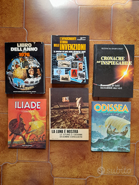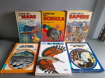 Vendo varie enciclopedie degli anni 70 per ragazzi e precisamente : 5 volumi dell'enciclopedia Saperbene - Ricerche della edizioni la Sorgente a 20 euro ; 2 volumi la civiltà e l'arte e la terra e lo spazio dell'enciclopedia Saperbene della De Agostini a 6 euro cadauno ; l'affascinante Storia delle Invenzioni a 25 euro; Vulcani della deAgostini a 10 euro ; gli squali e le balene a 10 euro cadauno ; i due libri della conquista del cielo e della storia della terra a 8 euro ; il grande libro della storia del sapere,della scienza e del mare a 6 euro l'uno e gli uccelli a 10 euro ; alla scoperta della terra a 15 euro, l'odissea e l'iliade a 15 euro entrambe ; 3 volumi profili storia dei mezzi corazzati a 60 euro ; la luna è nostra a 7 euro ; Cronache dell'inspiegabile a 15 euro ; il libro dell'anno 1976 a 15 euro ; ecc . Le spese di spedizione sono a vostro carico.