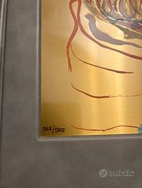 Serigrafia originale in 18 colori su lastra di acciaio, formato cm 25x35, ricoperta in oro 24K, eseguita presso la stamperia d'Arte Squadro in tiratura limitata e collocata sulla copertina del volume.