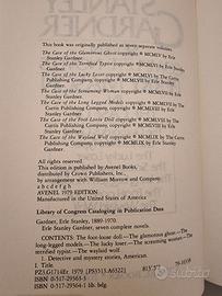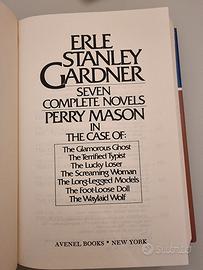 Volume rilegato “Seven Complete Perry Mason Novels” di Erle Stanley Gardner, celebre autore americano di narrativa gialla e creatore del personaggio dell’avvocato Perry Mason. Edizione Avenel Books – New York, 1979, che raccoglie sette romanzi completi e non abridged originariamente pubblicati separatamente. Contiene i seguenti titoli della serie Perry Mason: The Case of the Foot-Loose Doll The Case of the Glamorous Ghost The Case of the Long-Legged Models The Case of the Lucky Loser The Case of the Screaming Woman The Case of the Terrified Typist The Case of the Waylaid Wolf Classico del giallo giudiziario americano, con trame investigative, colpi di scena e processi in aula. Dati editoriali Autore: Erle Stanley Gardner Titolo: Seven Complete Perry Mason Novels Editore: Avenel Books, New York Anno: 1979 Lingua: inglese Pagine: 821 Dimensioni: 16 × 23 cm Rilegatura: cartonato con sovraccoperta Condizioni Condizioni complessivamente buone, considerando l’età Sovraccoperta presente ma usurata, con strappi e mancanze nella parte superiore e lungo i bordi Copertina rigida blu in buono stato, con lievi segni d’uso Dorso solido Pagine interne complete, pulite e ben leggibili Lievi fioriture/bruniture sui tagli, tipiche del tempo Nessuna pagina mancante, legatura integra