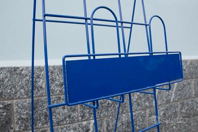 Espositori in ferro pieghevoli, ottimi per riviste, libri, quadri Disponibili 8 pezzi identici, stesso colore (blu come in foto) Se comprati in lotto prezzo totale 100 euro dimensioni: 115 x 34 x 34 cm (base aperta)