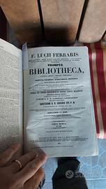F. Lucii Ferraris - Prompta Bibliotheca Canonica, Juridica, Moralis, Theologica + Juris Canonici Universi 1863 insieme di 5 volumi di metà Ottocento, fondamentali per lo studio del diritto canonico e delle scienze ecclesiastiche, pubblicati dal celebre editore parigino J.-P. Migne. Il lotto è composto da: Prompta Bibliotheca Canonica, Juridica, Moralis, Theologica... di Lucius Ferraris. (7 Tomi più indice =4 libri) + Juris Canonici Universi Compendium (1 Tomo=1 libro) - 1863/1866 Edizione monumentale curata dai monaci di Montecassino Anni di pubblicazione: 1863-1866.