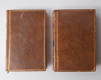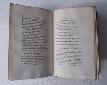 Rara edizione delle Fables di Jean de La Fontaine, pubblicata a Parigi nel 1818 dall’editore Alexis Eymery, con il commento letterario e grammaticale di Charles Nodier, figura di primo piano del Romanticismo francese. È qui proposta l’opera completa in 2 volumi in dodicesimo (13x20 cm), rappresentativa della grande editoria francese dell’inizio del XIX secolo. Legatura: pregiata legatura coeva in piena pelle: •dorsi decorati con fregi in oro •titoli impressi in oro su tassello •tagli dorati Le legature risultano solide e ben conservate. Si segnala una piccola lacuna al dorso del tomo II, pur senza compromissioni strutturali. Illustrazioni: esemplare completo delle 12 incisioni fuori testo, incise su disegni di Pierre-Nolasque Bergeret, tutte presenti. Stato di conservazione: condizioni complessivamente molto buone per l’epoca: •copertine con normali segni d’usura del tempo, ma integre •interni completi, senza mancanze •presenza di fioriture sparse •alcune bruniture su pagine e tavole Note: edizione di grande interesse storico e bibliografico, tra le prime a offrire un commento critico sistematico alle Fables. Molto ricercata da collezionisti e studiosi per la qualità tipografica e l’importanza dell’apparato di Nodier.