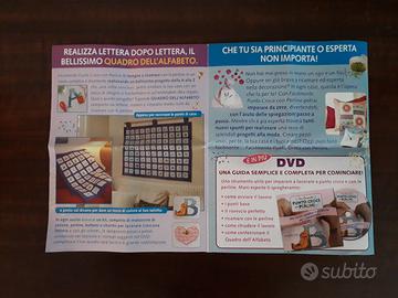 14 tagli di tela aida + 1 pannello di stoffa per confezionare il quadro alfabeto + 2 tagli già da me lavorati (rimane completo, anche se non ho proseguito con le uscite)