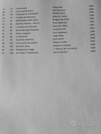 In vendita 61 volumi della mitica collezione COSMO ORO prodotta dall' Editrice Nord, in blocco unico. I volumi sono originali di prima edizione e traduzione integrale. Vedi ultime due foto per la lista dettagliata. L'acquirente si troverà così già con quasi un terzo di collezione completata. Il prezzo unitario è di soli 4,10 euro a volume (4,10 x 61 = 250). Preferibile ovviamente la consegna a mano, visto il peso e il volume considerevole. I libri sono in zona Milano, ma posso avvicinarmi anche io al luogo del compratore, nei limiti...per la spedizione ho indicato 10 euro, ma i costi saranno ovviamente ben superiori. Posso vendere anche singoli volumi di questi 61, ma a prezzo da concordare. Scambio volentieri singoli pezzi con Cosmo Argento che mi mancano. Ho anche altri volumi, più rari, a prezzi superiori, in un altro annuncio, oltre ad una collezione di Cosmo Argento. Date un occhio a tutti i miei annunci. Contattatemi qui via mail o meglio tramite whatsapp al 329-4748767, per accordi nel dettaglio.
