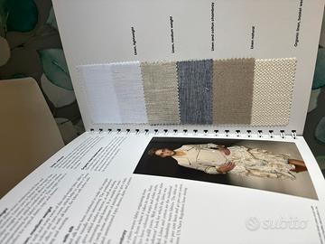 Volume professionale con 142 campioni reali di tessuti e filati, ideale per stilisti, modellisti e studenti. Ogni swatch è accompagnato da spiegazioni, schede tecniche e informazioni sulle applicazioni.