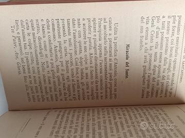Vendo una copia di "Filotea Antoniana", libro di preghiere di padre Ferdinando Diotallevi ispirato alla figura di Sant'Antonio da Padova. Libro usato, seconda edizione stampata, all'inizio del 1900, dallo Stabilimento pontificio di arti grafiche sacre "A. Bertarelli & C" di Milano. Per collezionisti. Copertina di tela rigida scura con tagli rossi. Le pagine sono ingiallite, il volume riporta segni di usura e ha due scritte con un nome. Foliazione completa, testo leggibile. L'impaginazione ha resistito al trascorrere del tempo. Il volume misura 14 x 9 centimetri. Pagine, 800. Lingua, italiano.