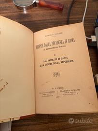 Firenze dalla decadenza di Roma al Risorgimento d’Italia – 1912 (3 volumi completi) di Romolo Caggese Opera completa (volumi I, II, III) Bella legatura in mezza pelle con piatti decorati a motivi araldici fiorentini (gigli e stemmi) Titoli in oro al dorso Ottima presenza estetica, ideale anche come arredo di studio o libreria Contenuti: •Dalle origini all’età di Dante •Dal Priorato alla caduta della Repubblica •Il Principato