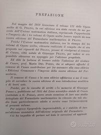 Vendo Formulario Mathematico di Giuseppe Peano, riproduzione in fac-simile dell'edizione originale, con introduzione e note di Ugo Cassina e con il contributo del Comune di Cuneo, Edizioni Cremonese del 1960. Volume pregevole di circa 470 pagine in condizioni perfette, come NUOVO, ancora intonso.