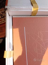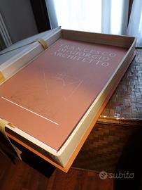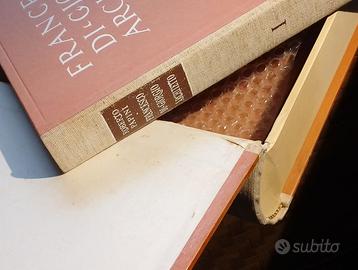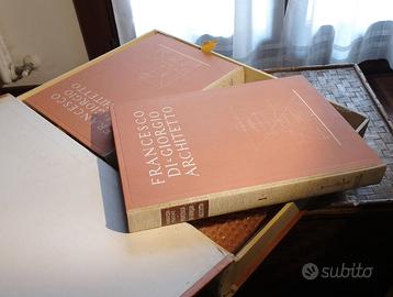 Papini, Roberto (1883-1957), Francesco Di Giorgio, Architetto. Set composto da contenitore originale in cartone e tela molto ben conservato e contenente due volumi di testo e immagini e un completo atlante di 42 tavole relative a opere di Francesco di Giorgio Martini, opportunamente rilevate metricamente e restituite con disegno. L'opera risale al 1946 e fa parte di una tiratura di soli 120 esemplari riservate a personalita e/o instituzioni. Tale edizione limitata si distingueva per la alta qualita della stampa e della carta (consistente e vellutata). L'esemplare riporta il n°41 di 120 e reca scritto edizione "ad personam". L'edizione si presenta in ottime condizioni di conservazione, per avere 80 anni. Ci sono alcune piccole macchie di ossidazione, sia sul dorso in tela del contenitore, sia, sporadicamente, sulle pagine interne dei due libri, mentre mai nell'atlante di tavole. In ogni caso si tratta di difetti per nulla invasivi. Prediligo presa visione in loco prima dell'acquisto. Se realmente interessati do contatto telefonico. L'opera, per stato e completezza vale tre volte la richiesta. This set consists of a cardboard and canvas original box, very well preserved and containing two volumes of text and illustrations and a complete atlas of 42 plates relating to the works of Francesco di Giorgio Martini, carefully metrically measured and illustrated with drawings. The work dates back to 1946 and is part of a limited edition of only 120 copies reserved for personalities and/or institutions. This limited edition was distinguished by the high quality printing and paper (consistent and velvety). This copy bears the number 41 of 120 and is marked "ad personam" (personal edition). The edition is in excellent condition being 80-year-old, but there are some small oxidation spots on the canvas spine of the container, very few in the inside pages of the two books, but no such defects are present in the atlas of plates. However, these are not at all invasive defects.