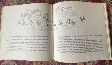 Splendido volume illustrato scritto da Goscinny e disegnato da Sempe’, autori iconici del fumetto e dell’umorismo francese. Pubblicato da Edizioni ERI nel 1967, racconta le divertenti avventure e le ricreazioni del piccolo Nicolino con testi e illustrazioni ricchi di ironia e poesia.