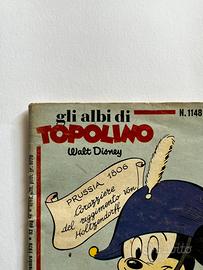 Fumetto di topolino intitolato gli albi di topolino della Walt Disney , 52 pagine , Mondadori , stampato in Italia N.1148 edizione novembre 1976 presenza imperfezioni come in foto leggermente sbiadito e qualche pagina un po’ ingiallita alcune storie sono a colori altre in bianco e nero per ulteriori informazioni contattatemi