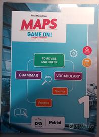 Libro d' inglese di prima media, non sottolineato o rilegato, provvisto di mappe delle unità e di CD audiolibro. È inoltre rilegato e fornito di etichetta per il nome dell' alunno