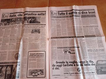 Vecchia Gazzetta dello sport Italia campione del mondo 1982 due giorni dopo. Data martedì 13 luglio 1982. Il giornale è integro di tutte le pagine con la foto storica Zoff, Pertini e Bearzot. Ha 20 pagine. Condizioni: è stropicciato e un po' scolorito ma sono normali segni dell'età. È un pezzo storico da collezione. È integro. Per le condizioni generali vedere bene le foto.